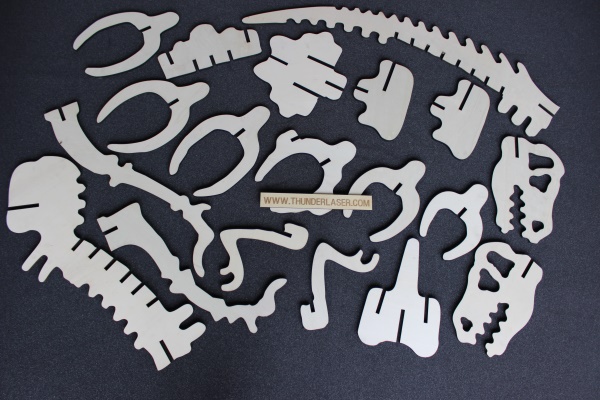laser cutting machine is widely used for cutting wood model; this time, Thunder laser will cut a huge dinosaur, if you install two red lamps to its eyes and add a speaker, it will be even more terrifying.